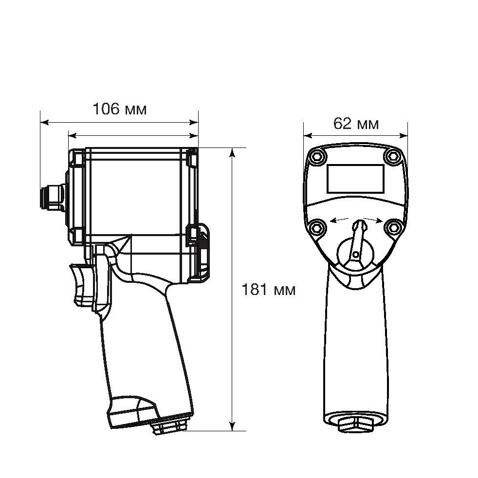Гайковерт пневматический ударный 1/2"DR 9000 об/мин., 620 Нм. Пневматический ударный гайковерт с цельнометаллическим корпусом, покрытым специальной, ударопрочной эмалью. Гайковерт применяется для обслуживания нагруженных соединений с максимальным моментом затяжки 620 Нм. Во время производства работ с применением пневматических ударных гайковертов, рекомендуется исполь-зование перчаток с виброгасящими накладками и средств защиты органов зрения и слуха.