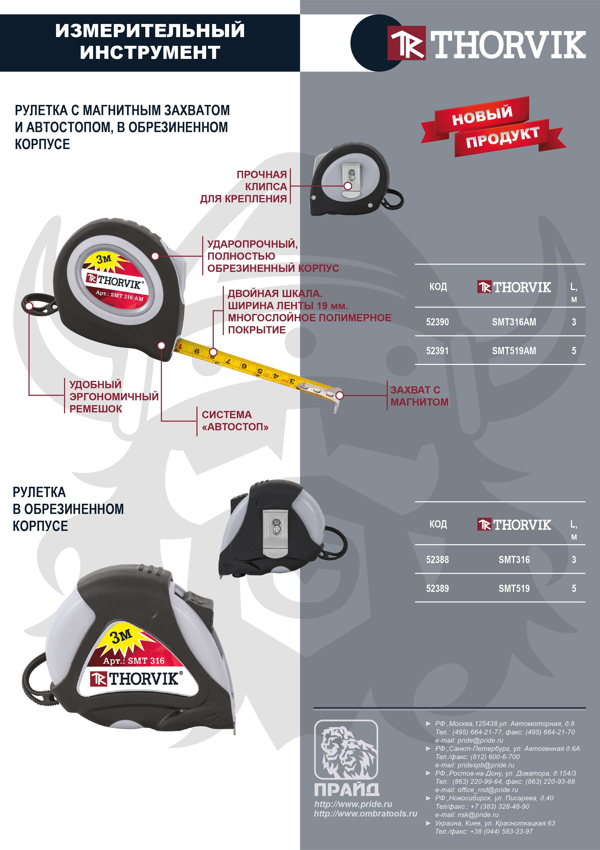 SMT519AM Рулетка с магнитным захватом и автостопом, в обрезиненном корпусе, 5 м